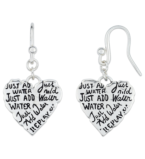 Replay Damenohrringe in Herzform mit Schriftzügen - JUST ADD WATER und REPLAY - Modell RAW237