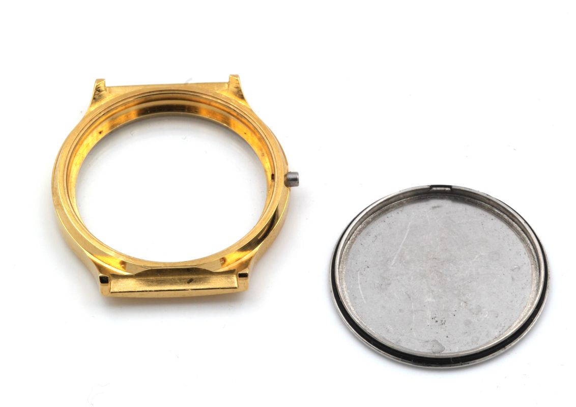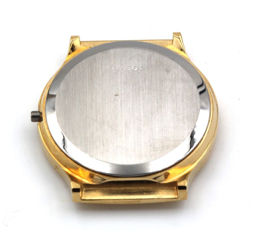 Osco Uhrengehäuse aus Edelstahl IP gold für gängige Quarzwerke, wie z.B. ETA 400, ETA 804 oder ähnlich.