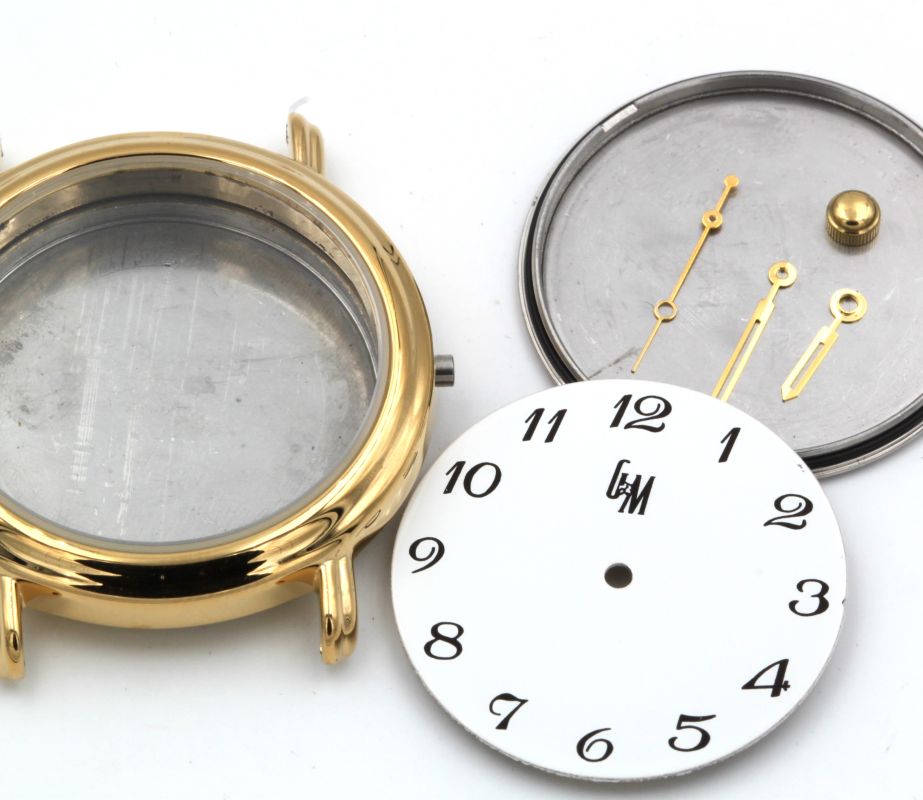 Osco Uhrengehäuse aus Edelstahl mit passendem Zifferblatt, Zeigersatz, Krone und Gehäuseboden für gängige Quarzwerke ohne Datumsanzeige, wie z.B. ETA 400, ETA 804